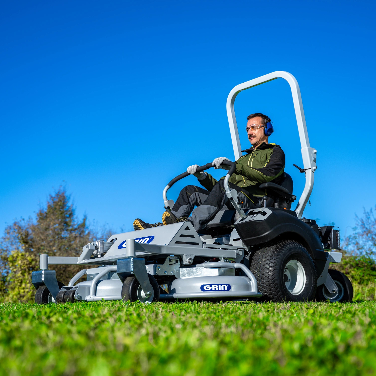 GRIN ZM è un trattorino tagliaerba con piatto frontale dedicato alla manutenzione di prati di grandi estensioni.