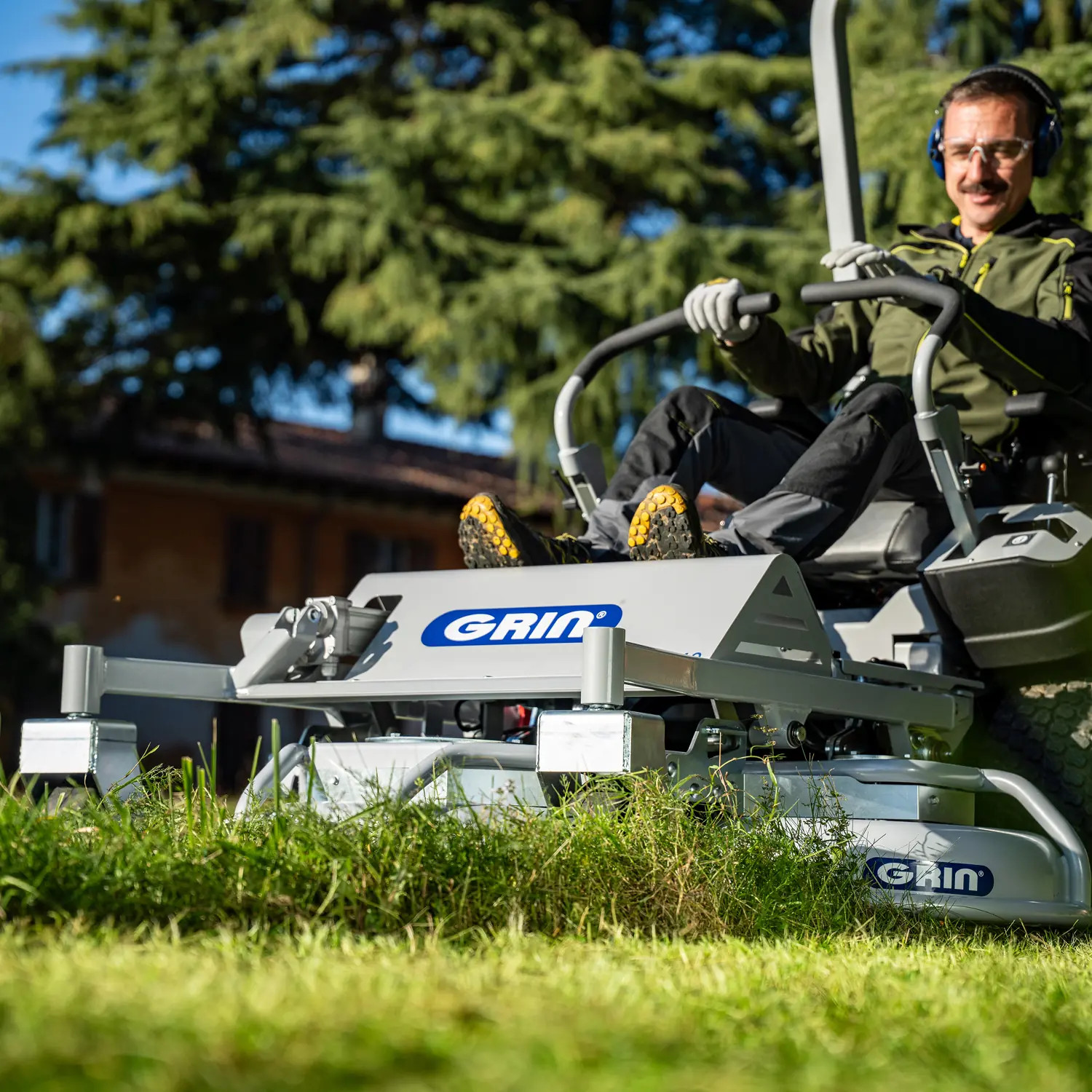 Il posizionamento frontale del piatto GRIN MAXI 3 e la conformazione della macchina motrice permettono all'operatore di tagliare sotto alle siepi e agli alberi, ma anche di avvicinarsi molto ad ostacoli e cordoli, diminuendo l'utilizzo del decespugliatore. Larghezza taglio